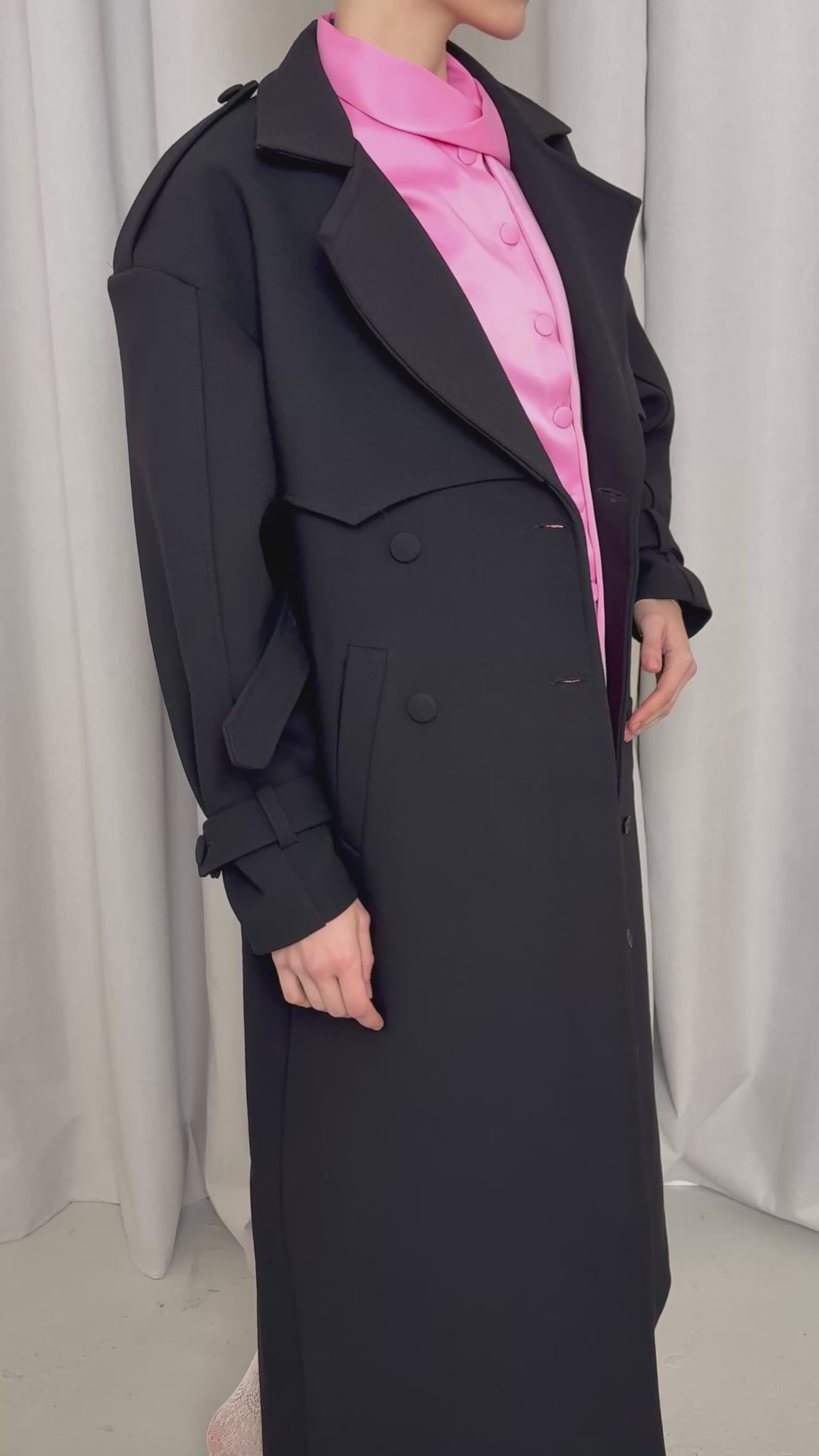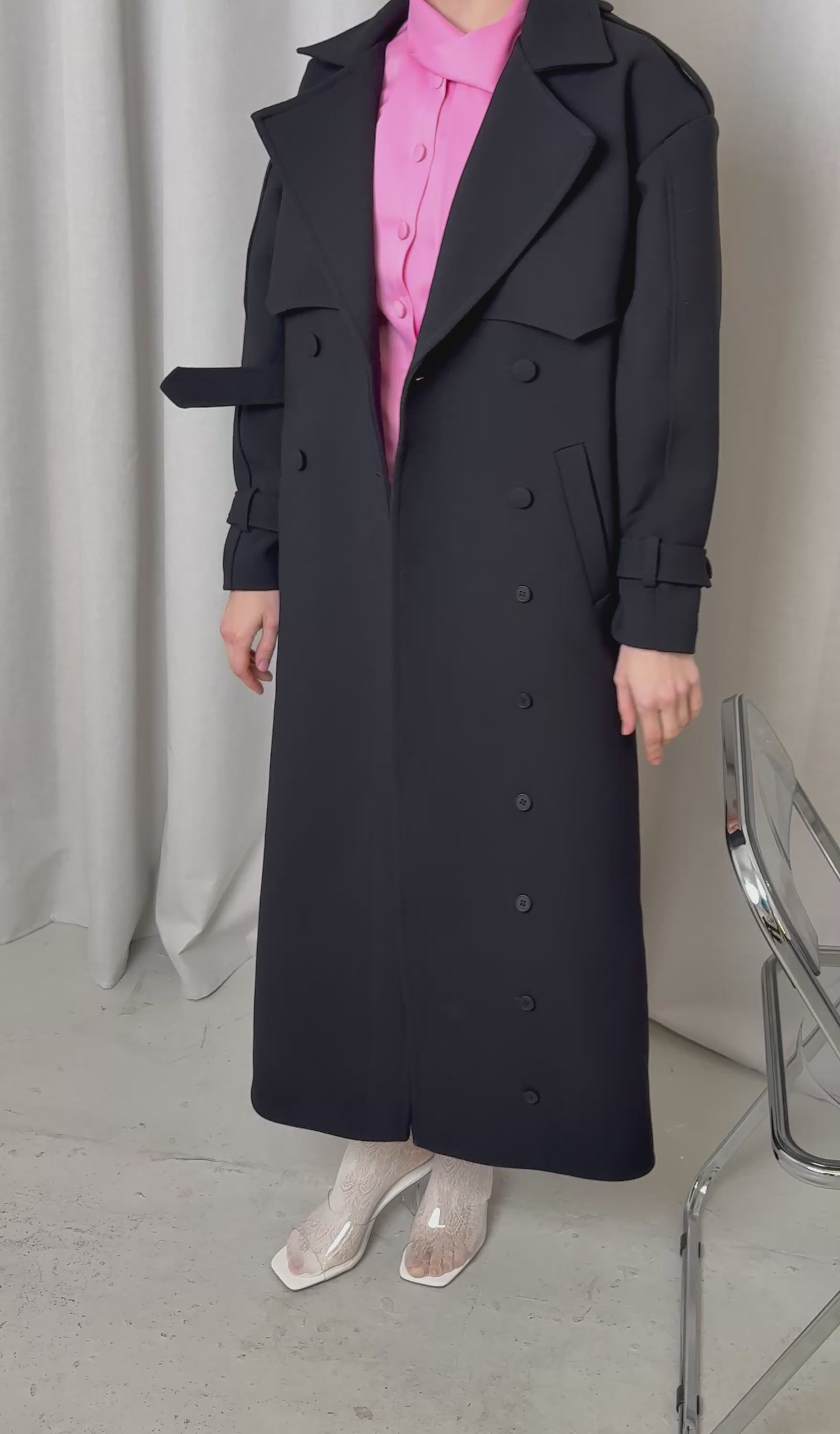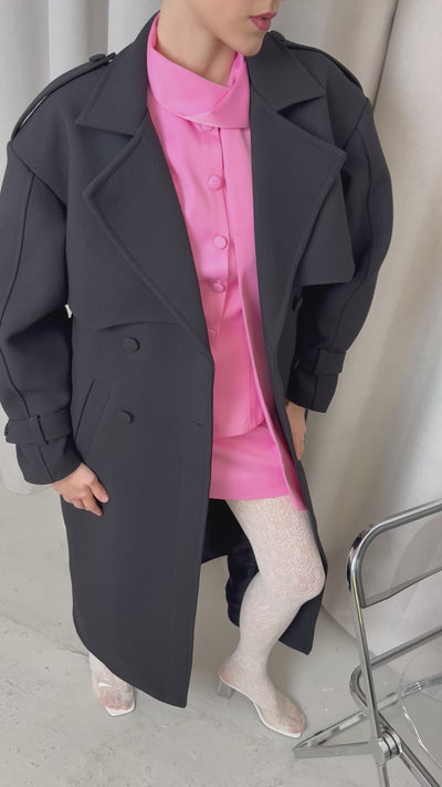 Double-breasted wool coat, crafted from 100% Italian wool.